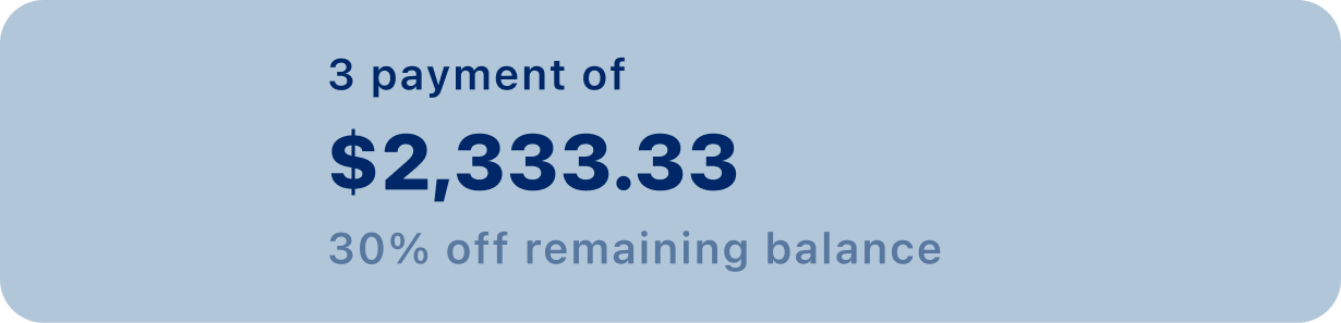 No back and forth. We offer you options up front. Just pick the payment plan that works best for you!
